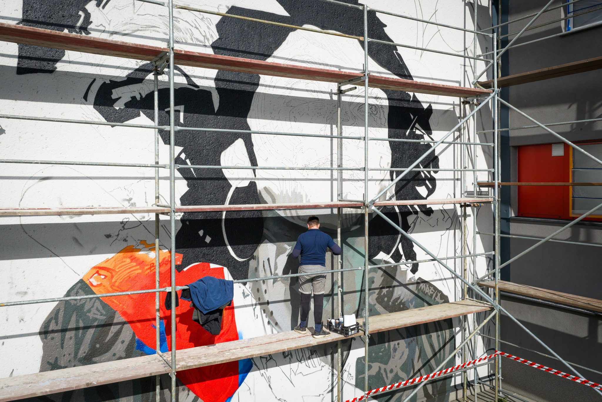 Tvorba muralu není jen o sprejování na zeď. Umělci využívají moderní technologie – náčrty přenášejí na fasádu pomocí brýlí virtuální reality, což jim umožňuje přesnější a efektivnější práci. Používají se špičkové barvy určené pro streetart, které odolají slunci i nepřízni počasí a zaručují dlouhou životnost díla.