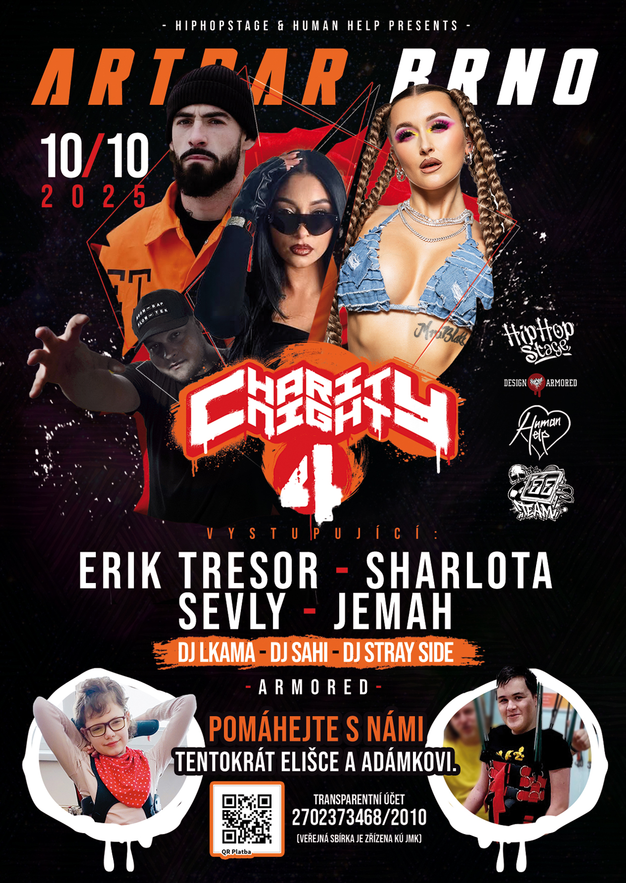 Vyvrcholením celé akce bude charitativní večer 10. října 2025 v brněnském klubu ARTBAR, kde budou peníze slavnostně předány. Na pódiu vystoupí Sevly & Thady, Sharlota, Jemah a Erik Tresor – hudební zážitek, který bude mít skutečný dopad.